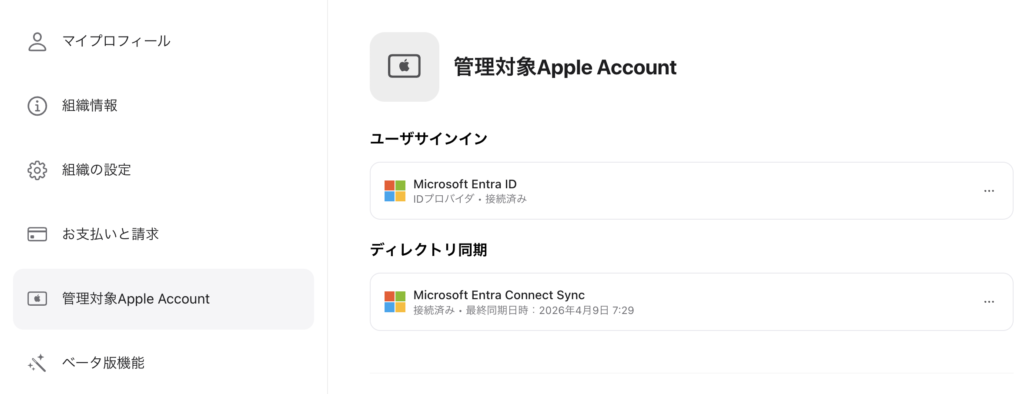 Entra IDと連携されたApple Business Managerの表示